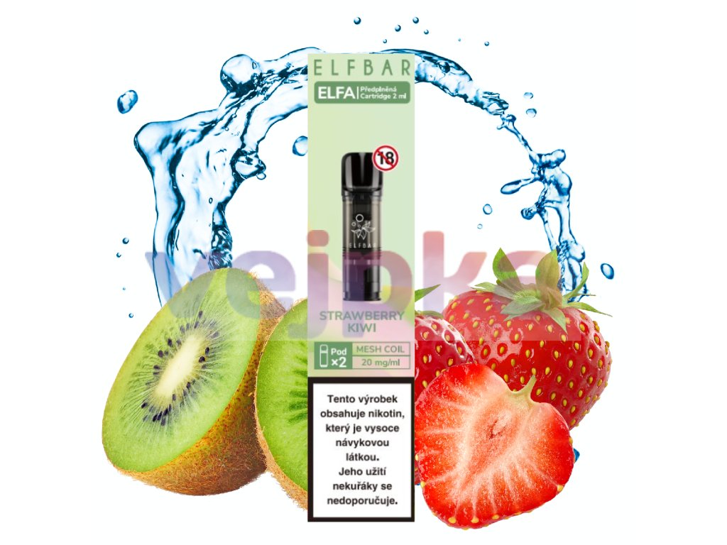 Osvěžující kombinace jahody a kiwi nyní také ve verzi Elf Bar ELFA podů. Pokud hledáte sladkokyselé ovocné spojení, ELFA Strawberry Kiwi vás rozhodně nezklame.
