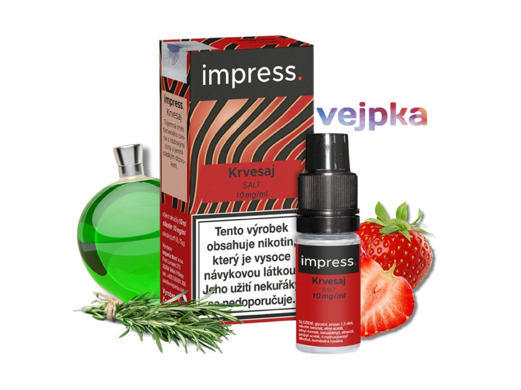 IMPRESS Salt Krvesaj je liquid s českým původem, který spojuje tradici bylinných likérů a jemnou ovocnou sladkost. Objevte jedinečnou chuť, která vás pohltí už po prvním potahu. Vyzkoušejte i další příchutě ze série Liquid IMPRESS Salt nebo si prohlédněte podobné nikotinové soli od stejného výrobce EMPORIO Salt.