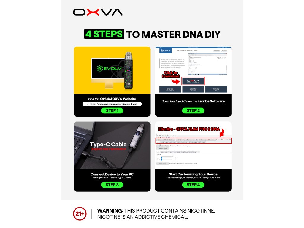 Srdcem zařízení OXVA XLIM Pro 2 DNA je čip OXVA x EVOLV DNA, který vyhodnocuje 30 000 údajů za sekundu a na jejich základě v reálném čase přizpůsobuje výkon. Výsledkem je: