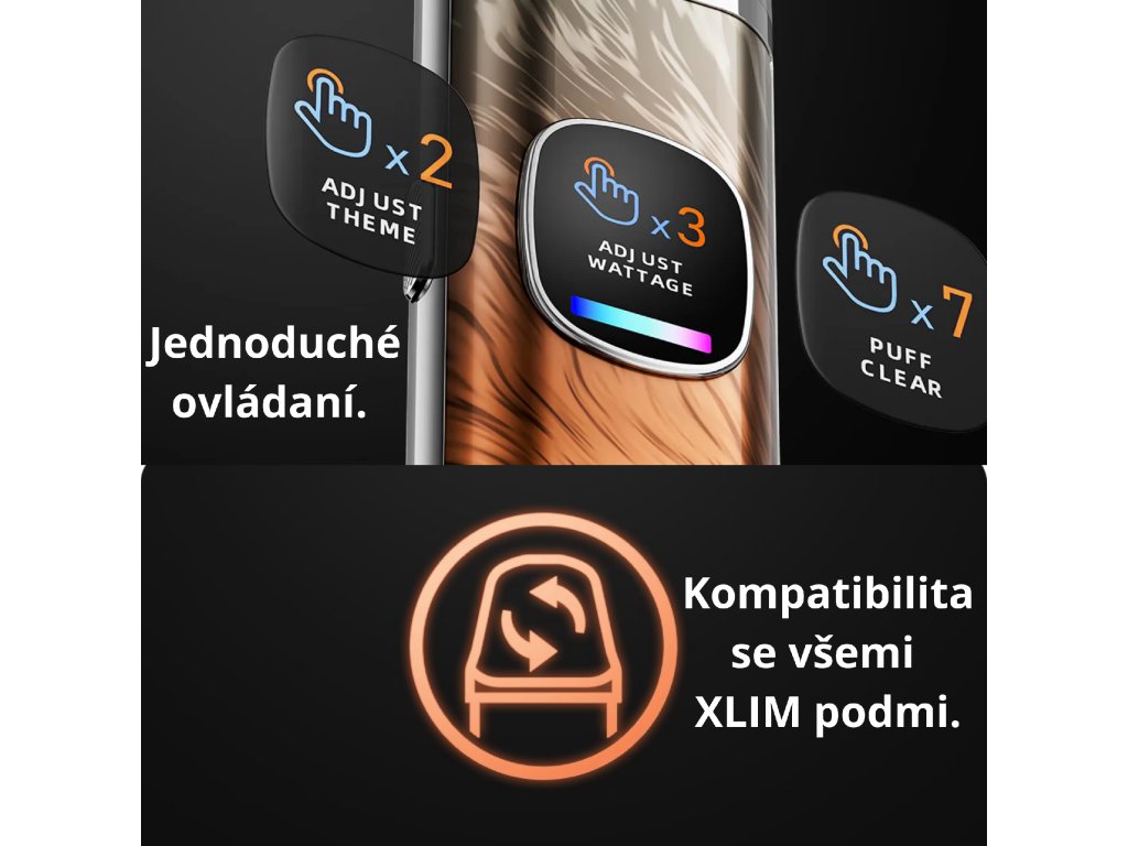 - Kompatibilní PODy: OXVA XLIM V3 (dostupné s odporem 0,6Ω, 0,8Ω, 1,2Ω), POD s odporem 0,4Ω