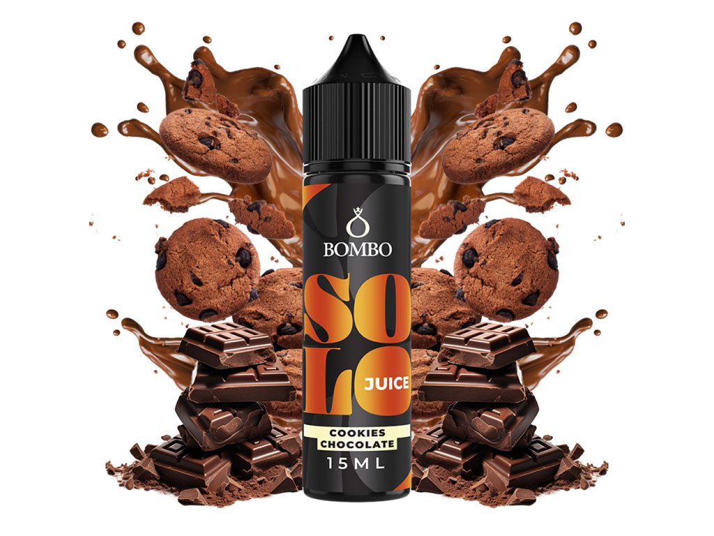 Bombo Solo Juice Cookies Chocolate je sladká a výrazná Shake & Vape příchuť ze série SOLO Juice, která přináší autentickou chuť čerstvě upečených čokoládových cookies. Vůně i chuť je plná kakaového tónu, jemné sladkosti a lahodné sušenkové struktury. Pochází ze Španělska (ES), neobsahuje nikotin a je určena k míchání s bází a nikotinovým boosterem.