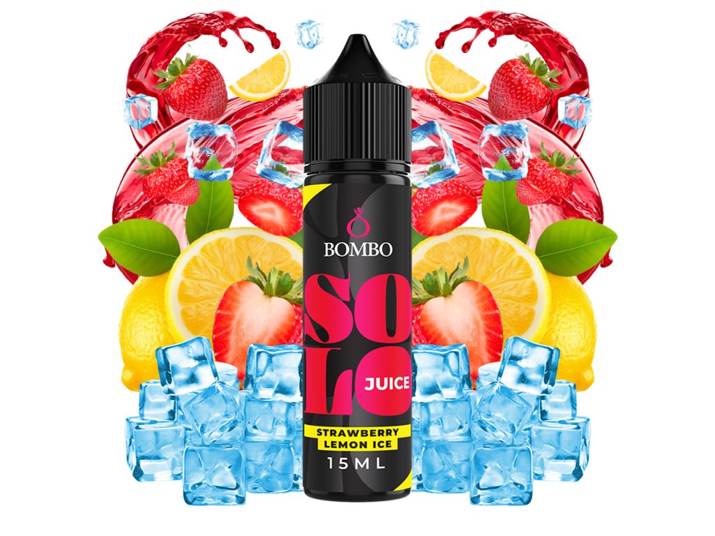 Bombo Solo Juice Strawberry Lemon Ice je svěží ovocná Shake & Vape příchuť ze série SOLO Juice. Spojuje sladkou chuť zralých jahod s výraznou kyselostí čerstvého citronu, to vše doplněné příjemným ledovým podtónem. Aroma pochází ze Španělska (ES) a před použitím je nutné jej smíchat s bází a boosterem.