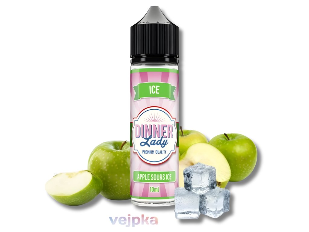 Dinner Lady Apple Sours Ice je svěží ovocná Shake & Vape příchuť ze série Ice, která spojuje sladkou chuť zralého jablka s výrazným coolingem pro dokonale mrazivé osvěžení. Tento oblíbený ledový mix pochází z Velké Británie (UK) a před použitím jej stačí smíchat s bází a boosterem.