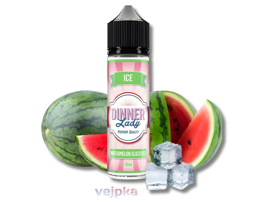 Dinner Lady Watermelon Slices Ice je osvěžující ovocná Shake & Vape příchuť ze série Ice, která proměňuje sladký vodní meloun v šumivě svěží limonádový zážitek. Intenzivní melounová sladkost je doplněna výrazným mrazivým efektem, díky čemuž příchuť působí jako perfektně vychlazená letní soda. Aroma pochází z Velké Británie (UK) a před použitím jej stačí smíchat s bází a boosterem.