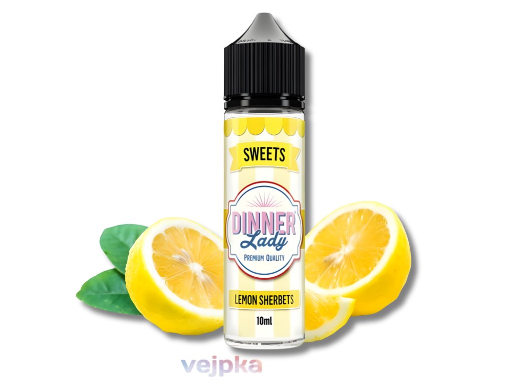 Dinner Lady Lemon Sherbet je výrazná a šťavnatá Shake & Vape příchuť ze série Sweets, která přináší jedinečnou citronovou chuť inspirovanou klasickými sladkokyselými bonbony. Osvěžující citrusová ostrost je vyvážená jemnou sladkostí, díky čemuž působí příjemně svěže a nevtíravě. Aroma pochází z Velké Británie (UK) a před použitím jej stačí smíchat s bází nebo boosterem.