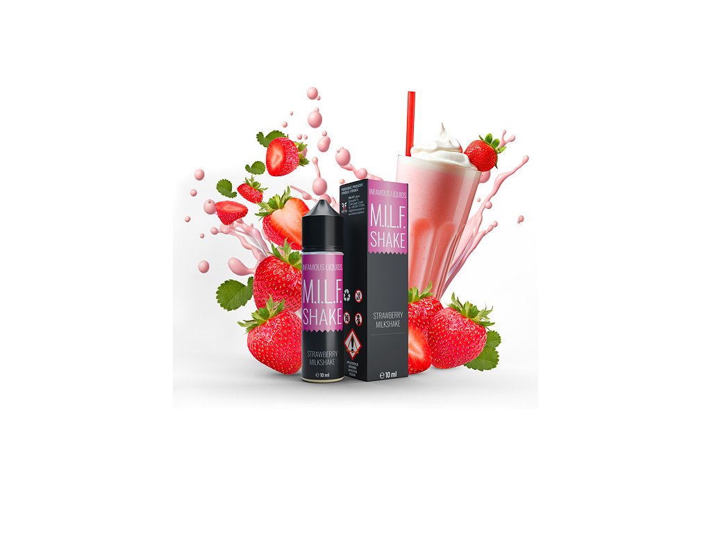 Infamous Originals MILF Shake je lahodná mléčná příchuť ze série Originals, vyrobenená v Chorvatsku (HR). V hlavní roli najdete šťavnaté kousky čerstvých zahradních jahod, rozmixované do hladkého jahodového milkshaku se sladce vyšlehaným mlékem.