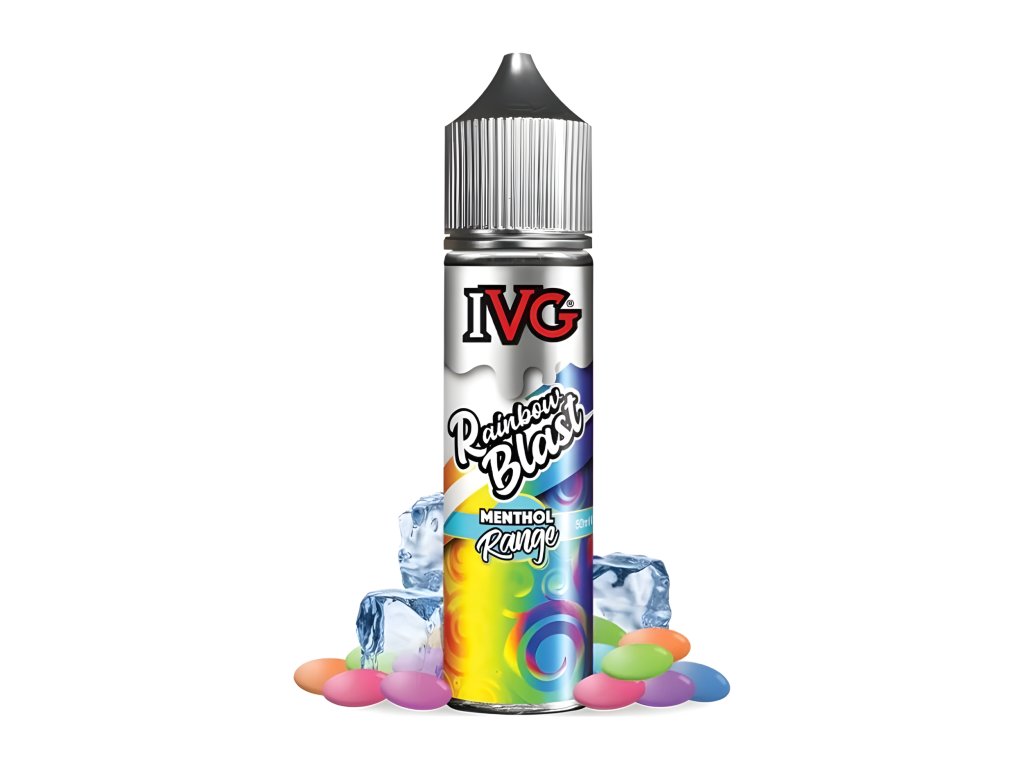 IVG Rainbow Blast je sladká, ovocná a jemně mentolová aróma, ideální pro milovníky candy chutí s lehkým chladivým efektem.