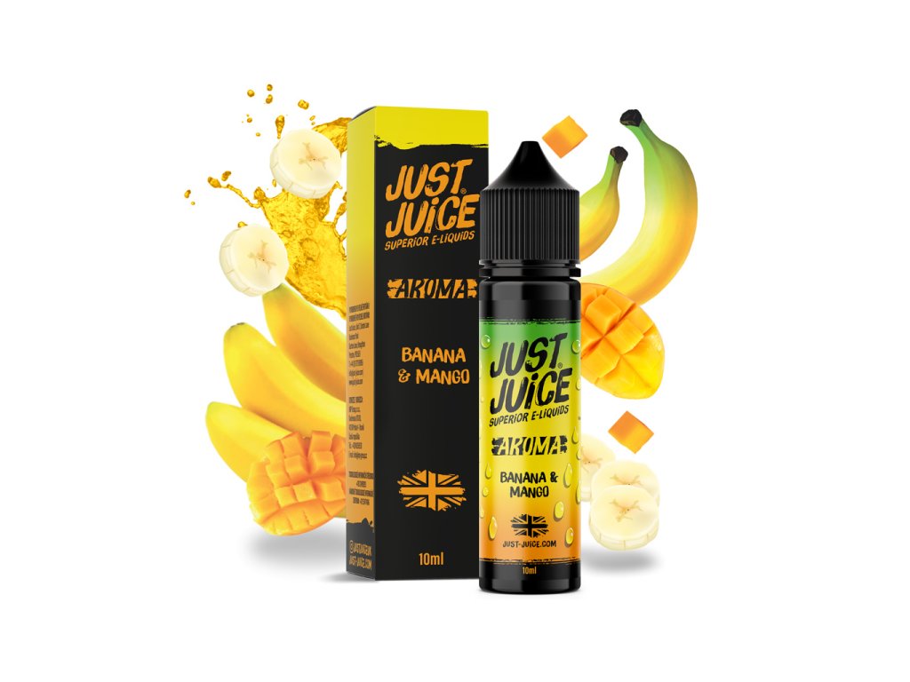 Just Juice Classic Banana & Mango je výrazná tropická Shake & Vape příchuť, která přináší skutečně impozantní chuť zralého banánu v dokonalé harmonii se šťavnatým a sladkým mangem. Tento plný ovocný mix nabízí intenzivní sladkost, exotický charakter a dokonale hladký chuťový projev. Aroma pochází z Velké Británie (UK) a neobsahuje nikotin – je určeno k míchání s bází a boosterem.