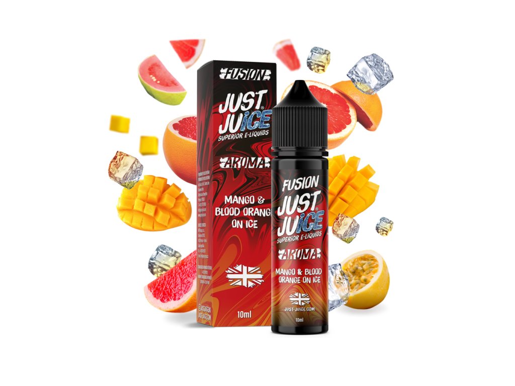 Just Juice Classic Fusion Mango & Blood Orange On Ice je výrazná tropicko-citrusová Shake & Vape příchuť, která spojuje šťavnatý červený pomeranč s exotickým mangem a doplňuje je o nádech marakuji a osvěžující chladivý efekt. Výsledkem je ultimátní ovocný mix plázivý svěžestí, sladkostí i citrusovou energií. Aroma pochází z Velké Británie (UK) a neobsahuje nikotin – je určeno k míchání s bází a boosterem.
