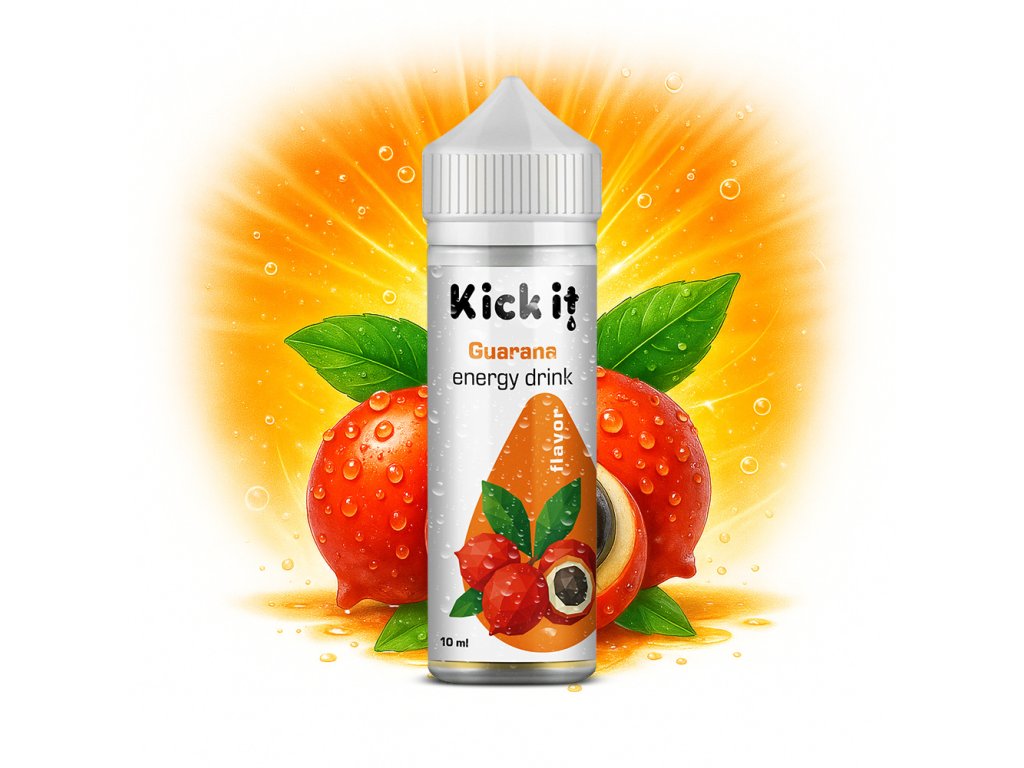 KickIt Guarana Energy Drink je výrazná, sladká a osvěžující Shake & Vape příchuť inspirovaná typickou chutí energetického nápoje. Spojuje charakteristickou sladkost energy drinku s lehce nahořklými bylinnými tóny guarany, které dodávají celé směsi autentický, energický a svěží profil. Aroma pochází z České republiky (CZ) a neobsahuje nikotin – slouží k míchání s bází a boosterem.