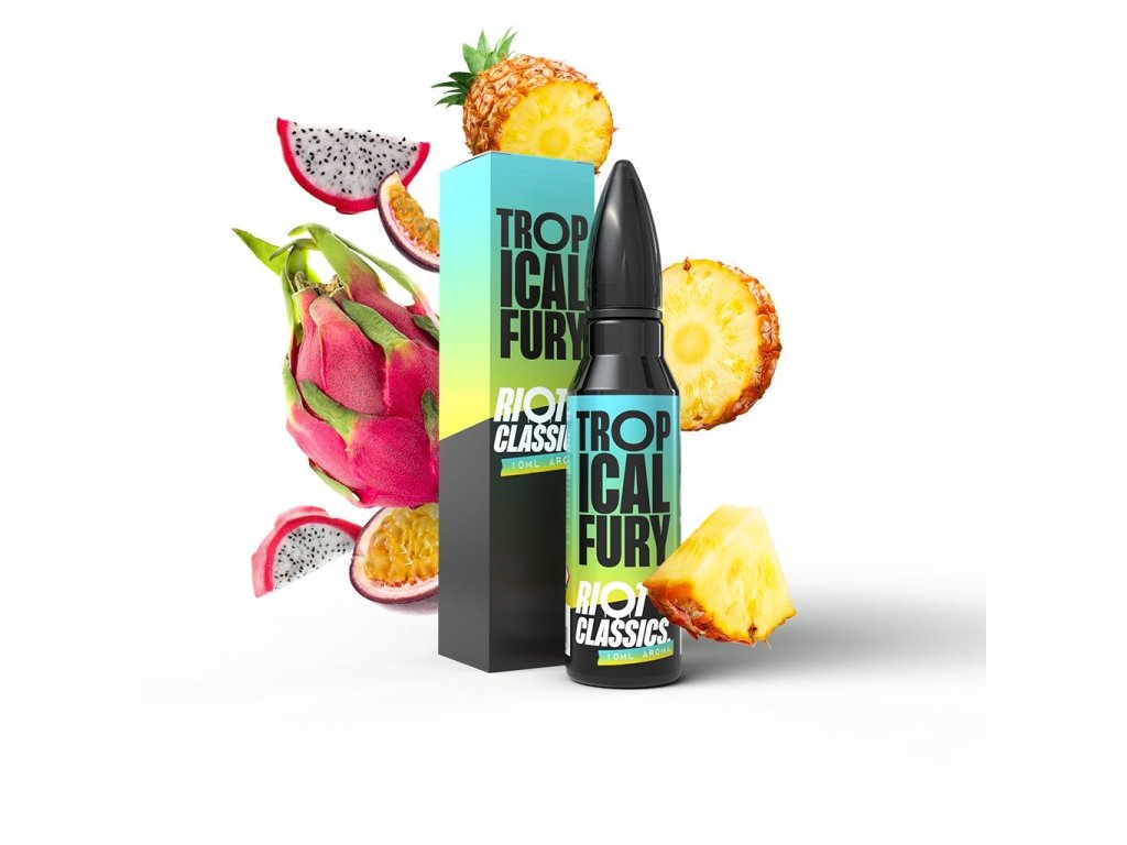 Riot Squad Tropical Fury je exotická, ovocná a energická aróma, ideální pro fanoušky tropických ovocných mixů.